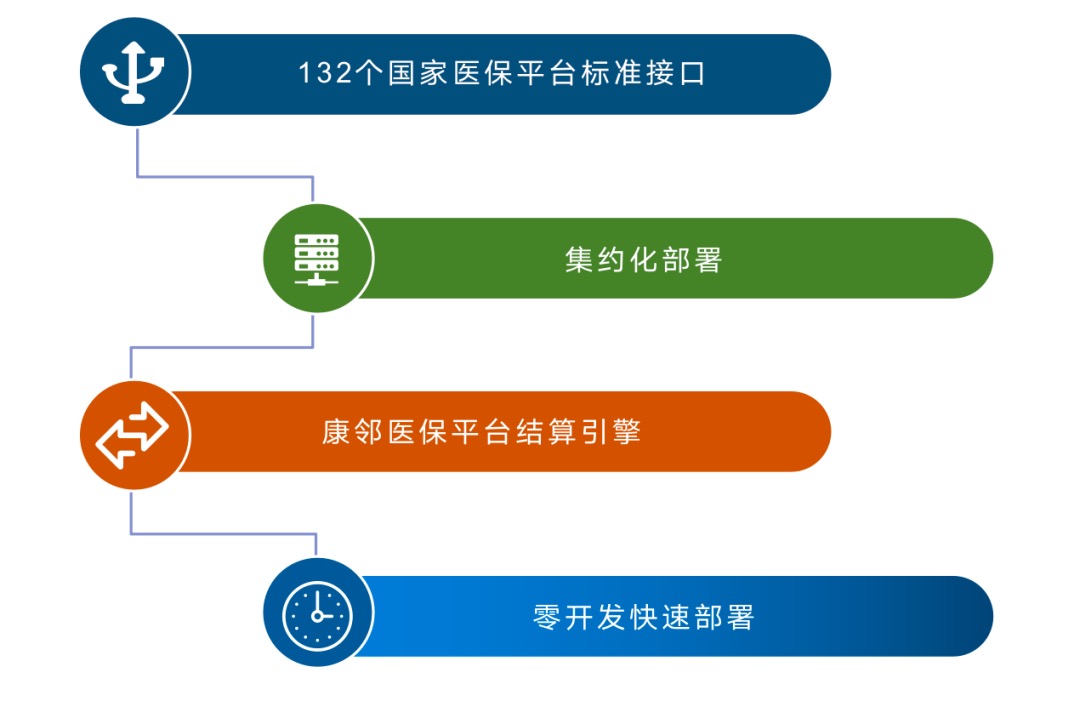 康鄰“智慧醫保平臺”產品將助力醫療機構打造松耦合、高內聚的醫保服務,且具備以下優勢: